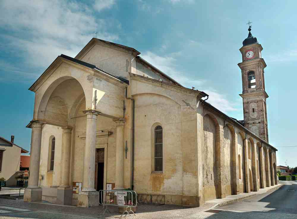 En l’absida se tròba decò un fònt baptesimal en marmo blanc, abo lo catin del Sèt Cents e un gamb gòtic, e de chapitèls abo fuelhas e escuds de Savòia. En la navada drecha, es enca’ en part sot chaucina un fresc de la premièra metat del XVI secle abo Sant Cristòfo.