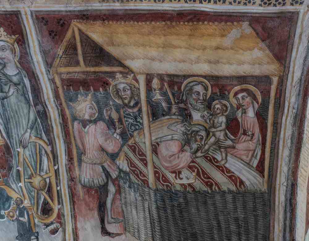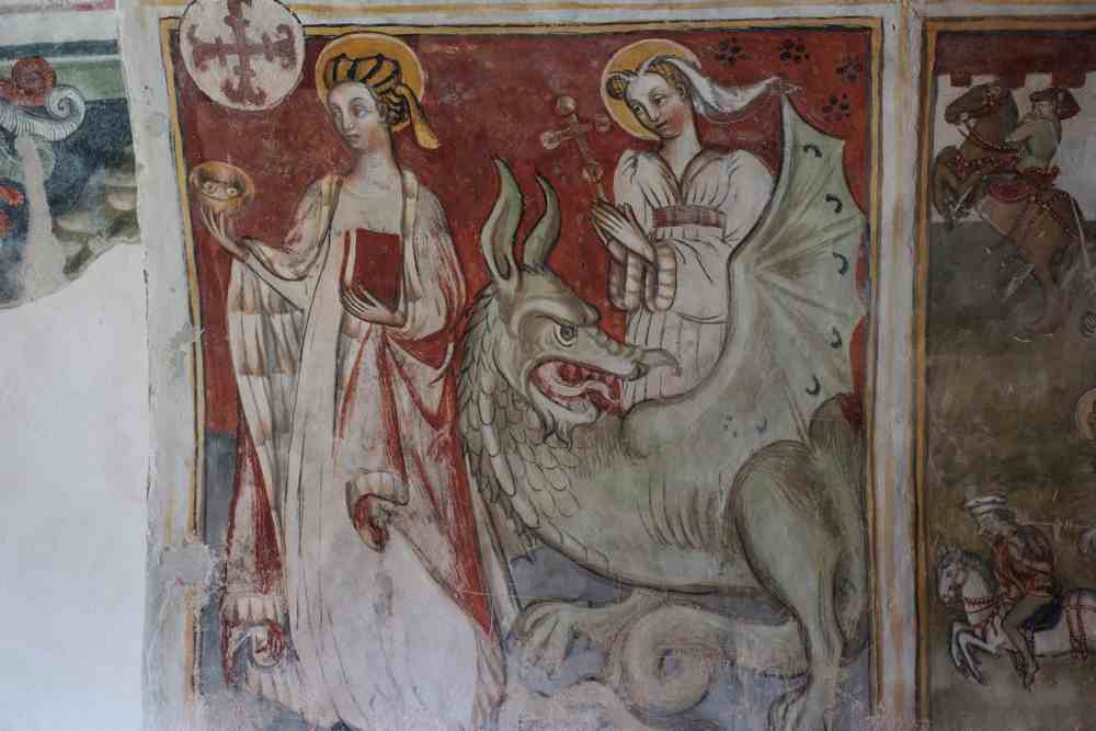 A manchina, d’un autre autor del mesme temp de Pèire da Saluces, es rafigurat Sant Jòrç que maça lo dragon per liberar la prencessa Trebisonda.